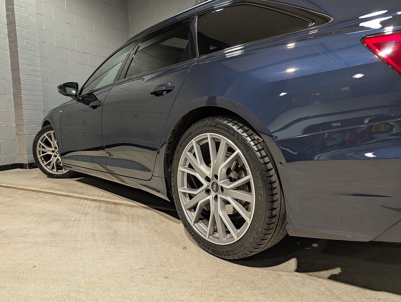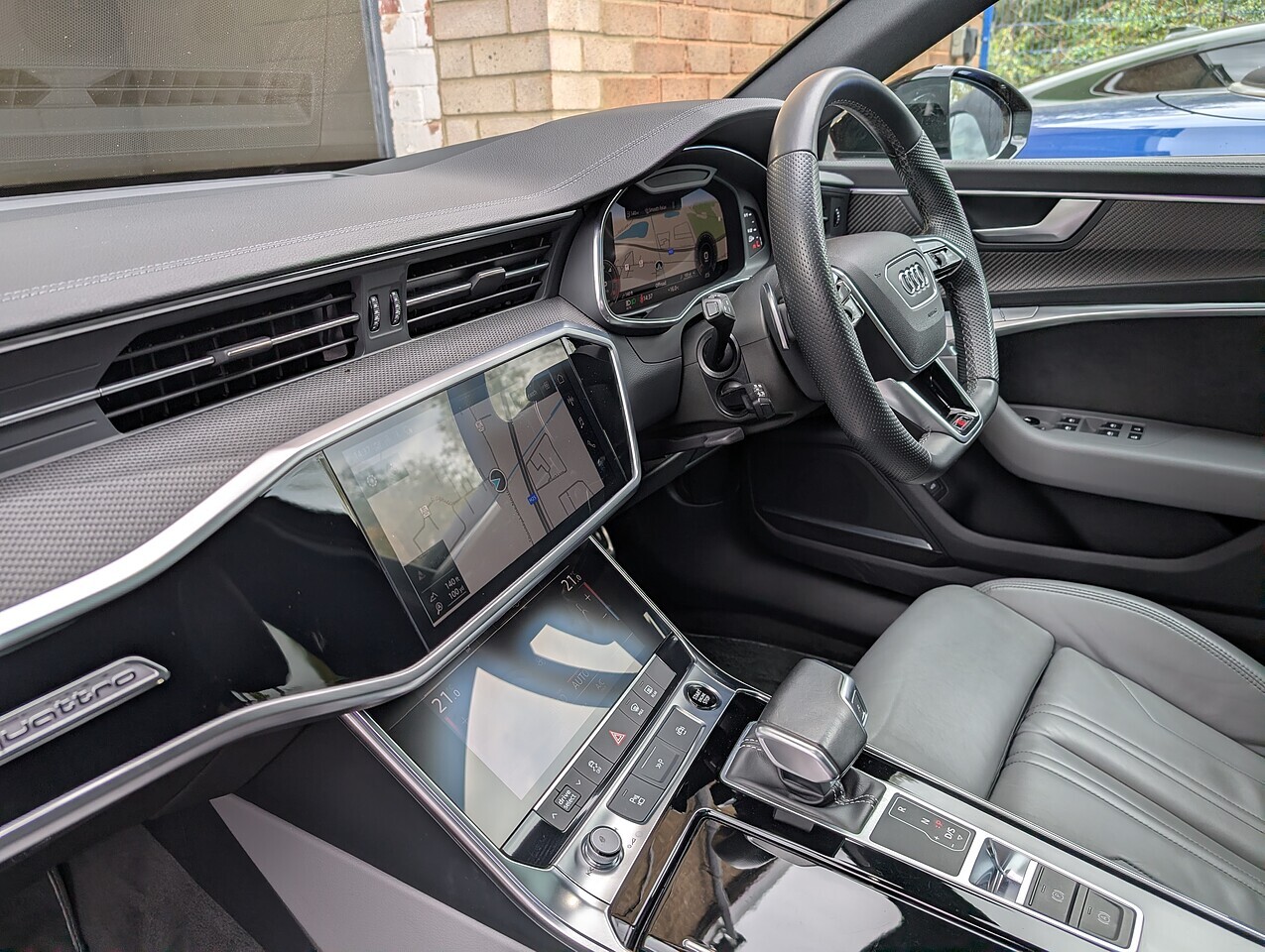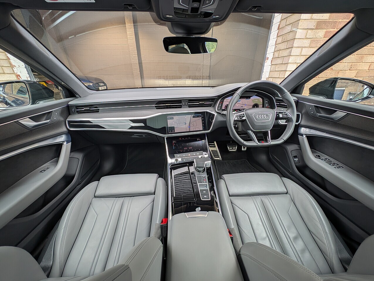 Panoramic glass sunroof, Comfort & sound pack, Technology pack, Firmament blue metallic paint, Full rotor grey leather interior, Gloss black styling pack, 20" 5-V-spoke star design alloy wheels, Carbon twill interior inlays, Electric folding door mirrors with memory, Park assist, Matrix LED headlamps, Virtual cockpit plus, Bang & Olufsen speaker upgrade, Phone box with wireless charging, 360 degree surround view cameras, Privacy glass.