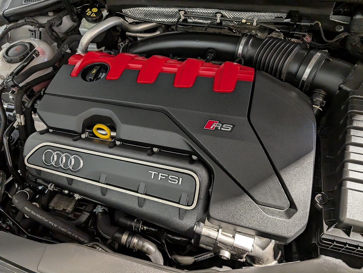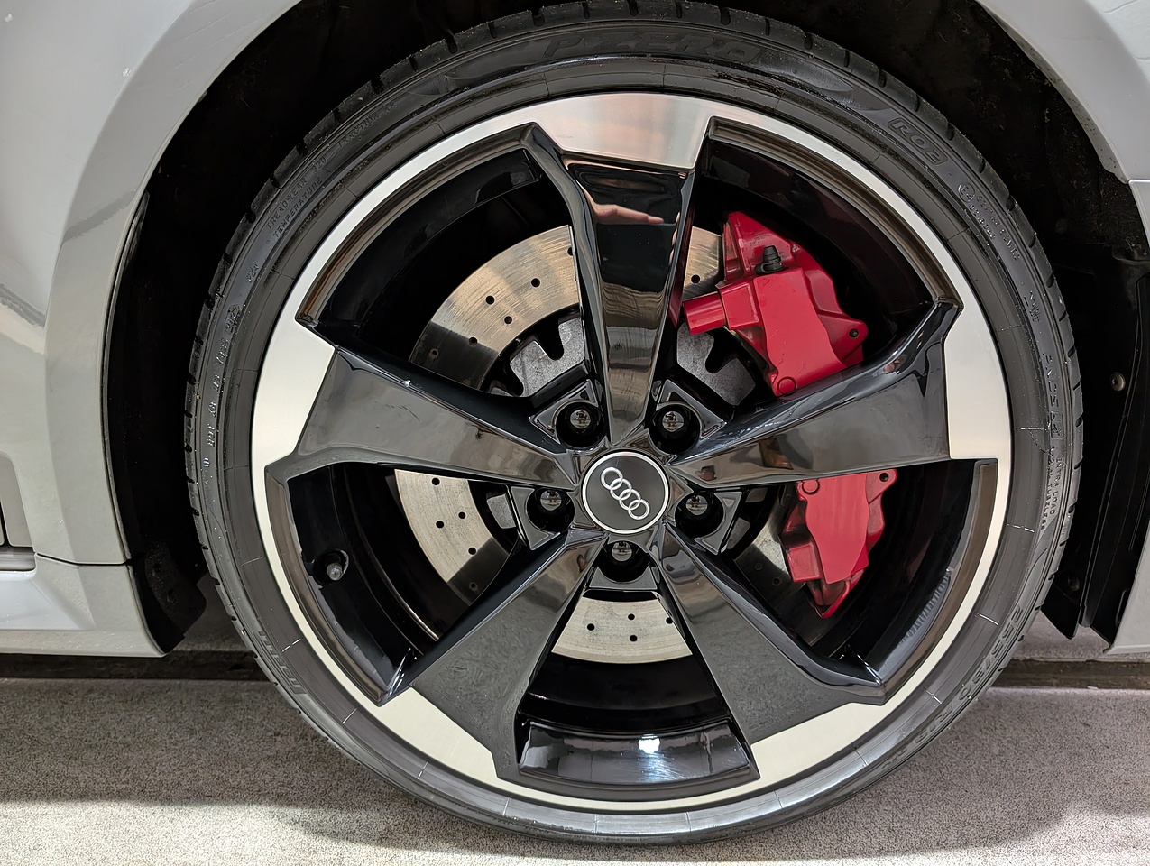 paintwork, Full black diamond stitched leather interior, RS Sports exhaust system, Red brake calipers, Magnetic ride control, Keyless entry & starting, Gloss black styling pack, Electric folding & dimming door mirrors, Bang & Olufsen speaker upgrade, Reversing camera, 19" 5-arm rotor style alloy wheels, 8.5" front wheels with 255 tyres, Hold assist, Privacy glass, Tyre pressure monitoring system.