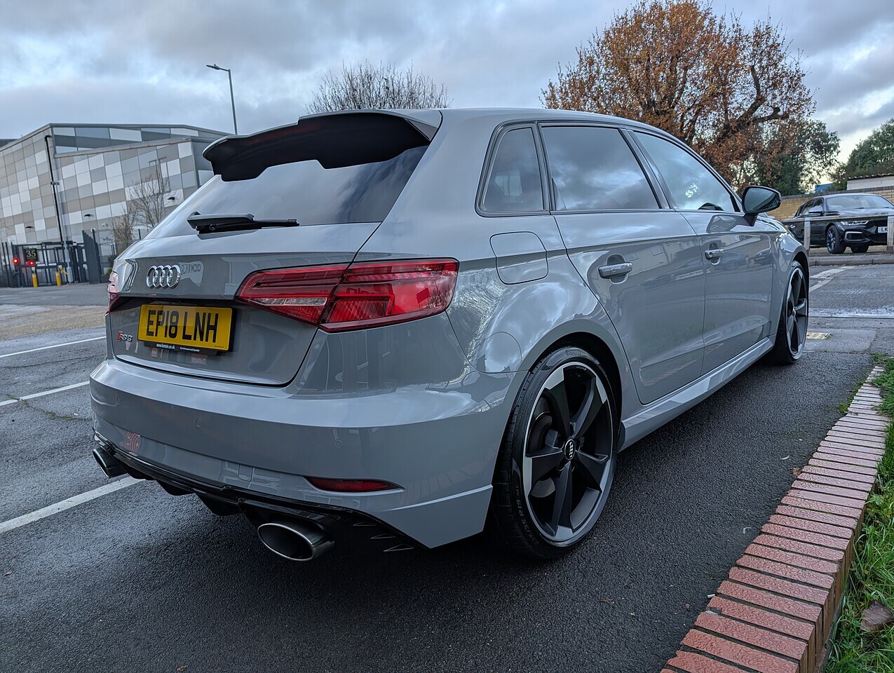 Comfort & sound pack, Supersport seats, Nardo grey paint, Full black diamond stitched leather interior, RS sports exhaust system, Magnetic ride control, Bang & Olufsen speaker upgrade, Reversing camera, Keyless entry & starting, Electric folding & dimming door mirrors, 19" 5-arm rotor design alloy wheels, 8.5" front wheels with 255 tyres, Privacy glass.