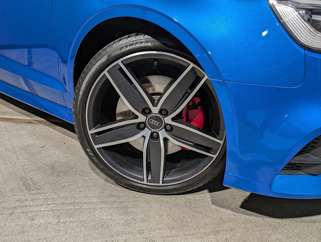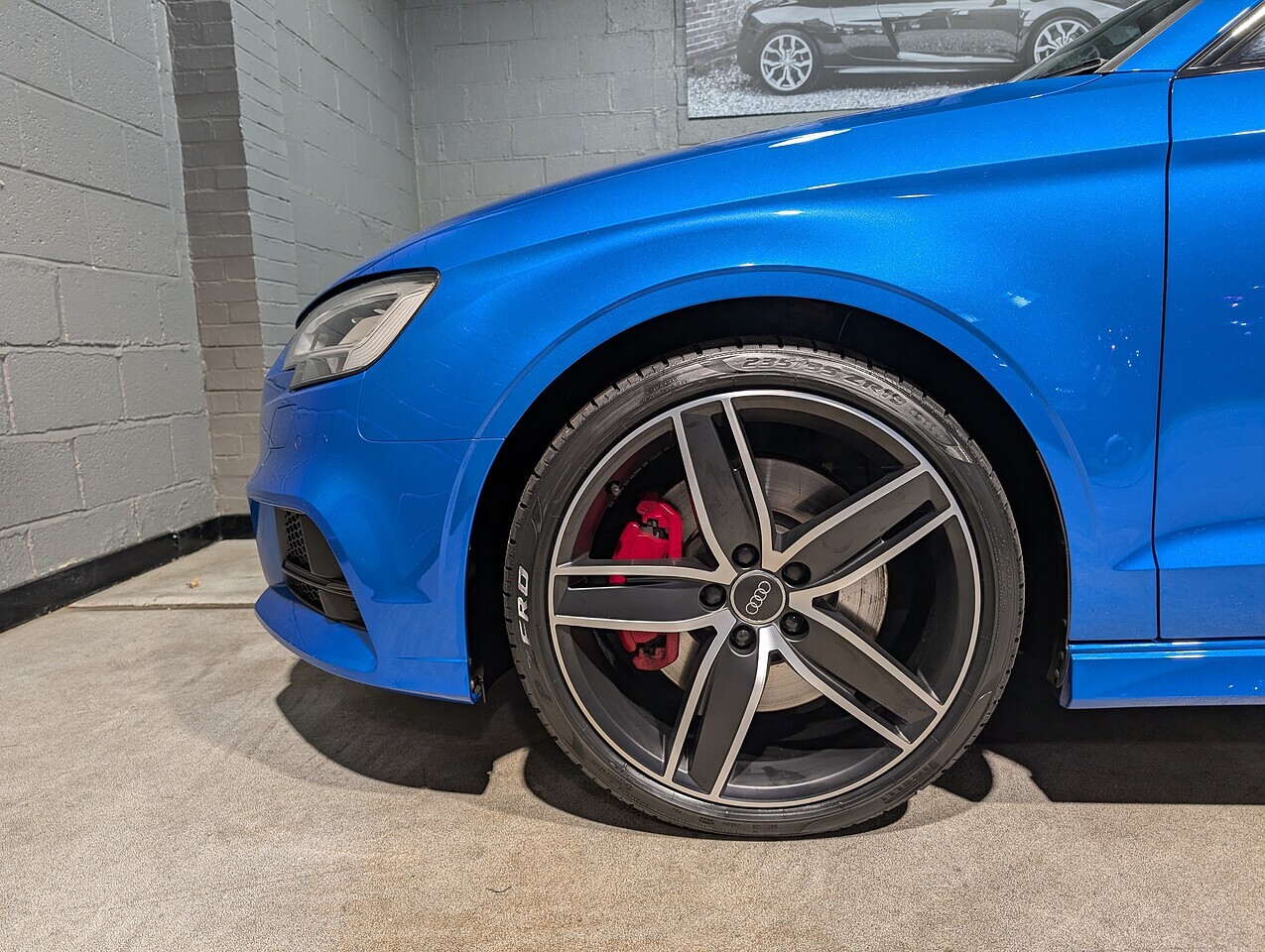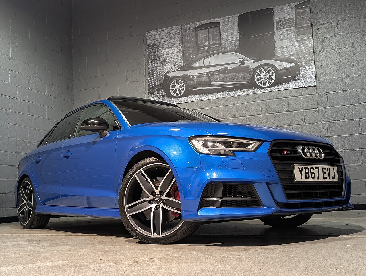 Panoramic glass sunroof, Technology pack advanced, Virtual cockpit, 19" 5-arm Wing design alloy wheels, Magnetic ride control, Reversing camera, Ara blue crystal effect paint, Full black leather interior, Electric folding & dimming door mirrors, Gloss black styling pack, Bang & Olufsen speaker upgrade, Privacy glass, Red brake calipers, Flat bottomed steering wheel, Parking system plus, Phone box with wireless charging, Hold assist, Privacy glass.