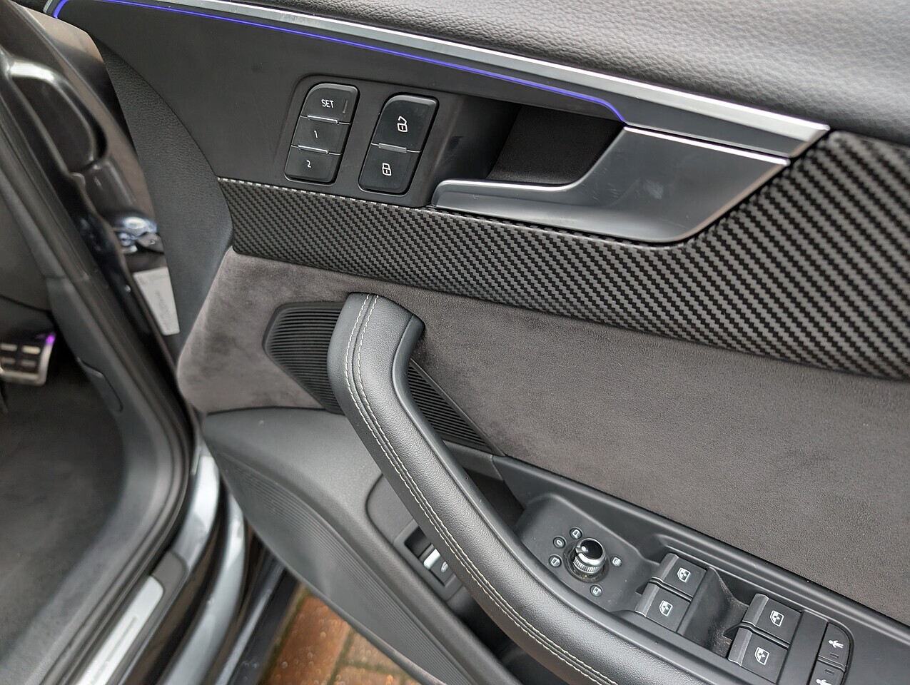 Panoramic glass sunroof, Light & vision pack, Comfort & sound pack, Daytona grey pearlescent paint, Full black diamond stitched leather interior, Flat bottomed steering wheel, Electric front seats with memory for driver, Gloss black styling pack, 19" 5-V-Spoke design alloy wheels, Keyless entry & starting, Electric folding & dimming door mirrors with memory, Matrix LED headlamps, Virtual cockpit, Bang & Olufsen speaker upgrade, Reversing camera, Extended LED ambient lighting pack, Hold assist, Privacy glass.