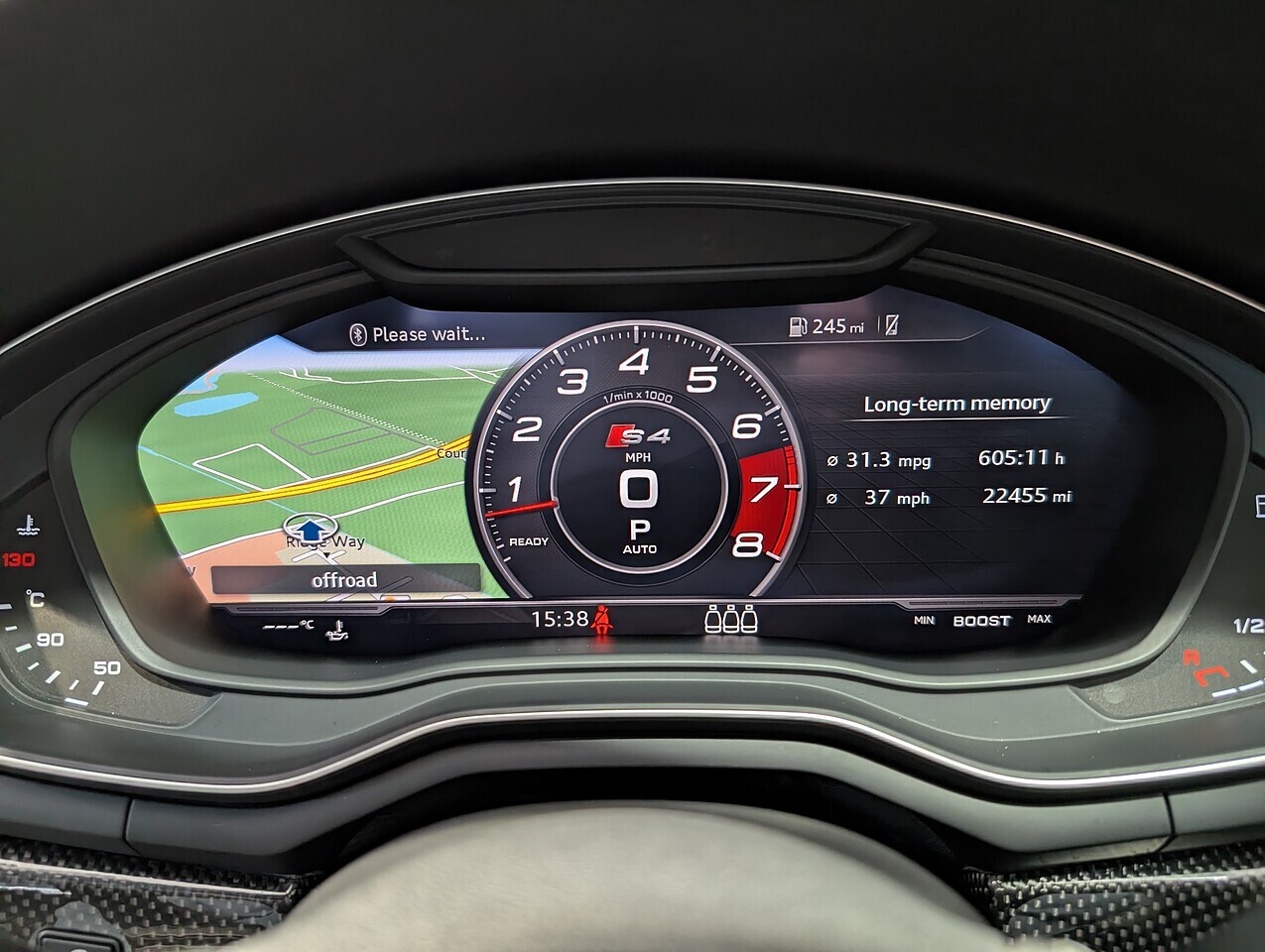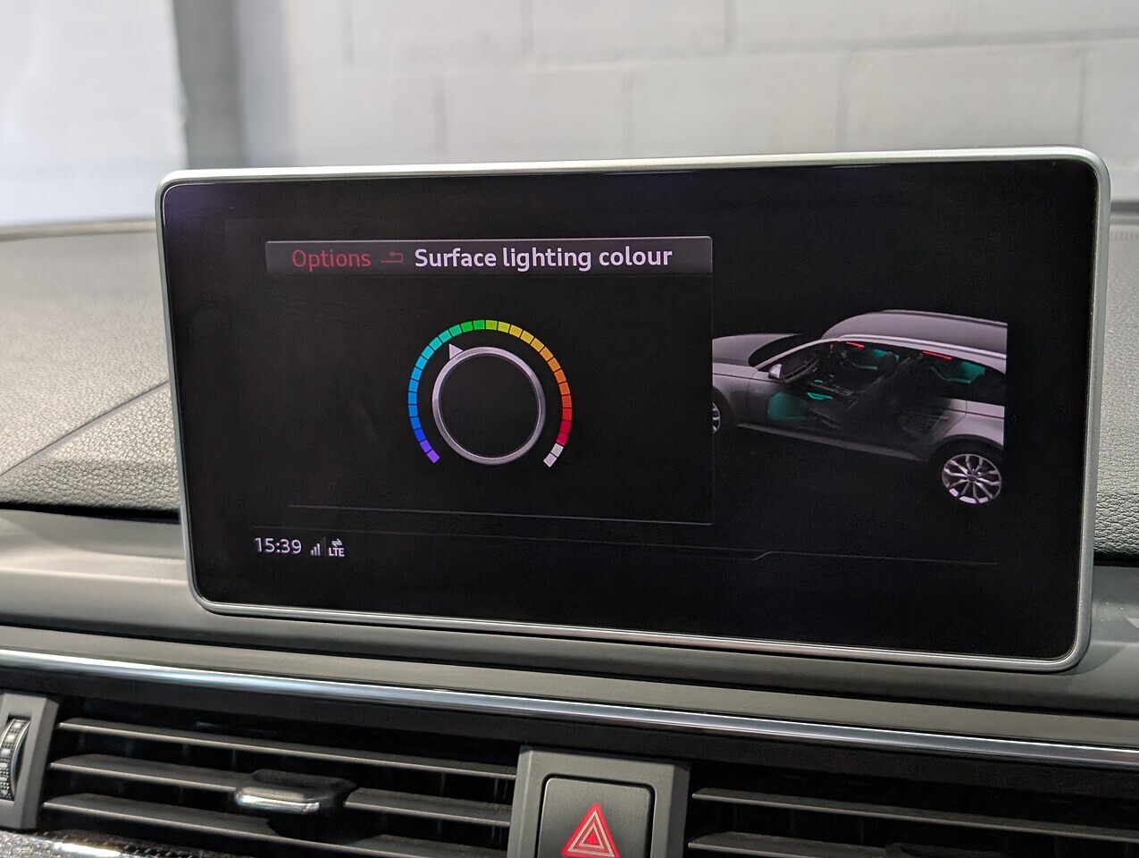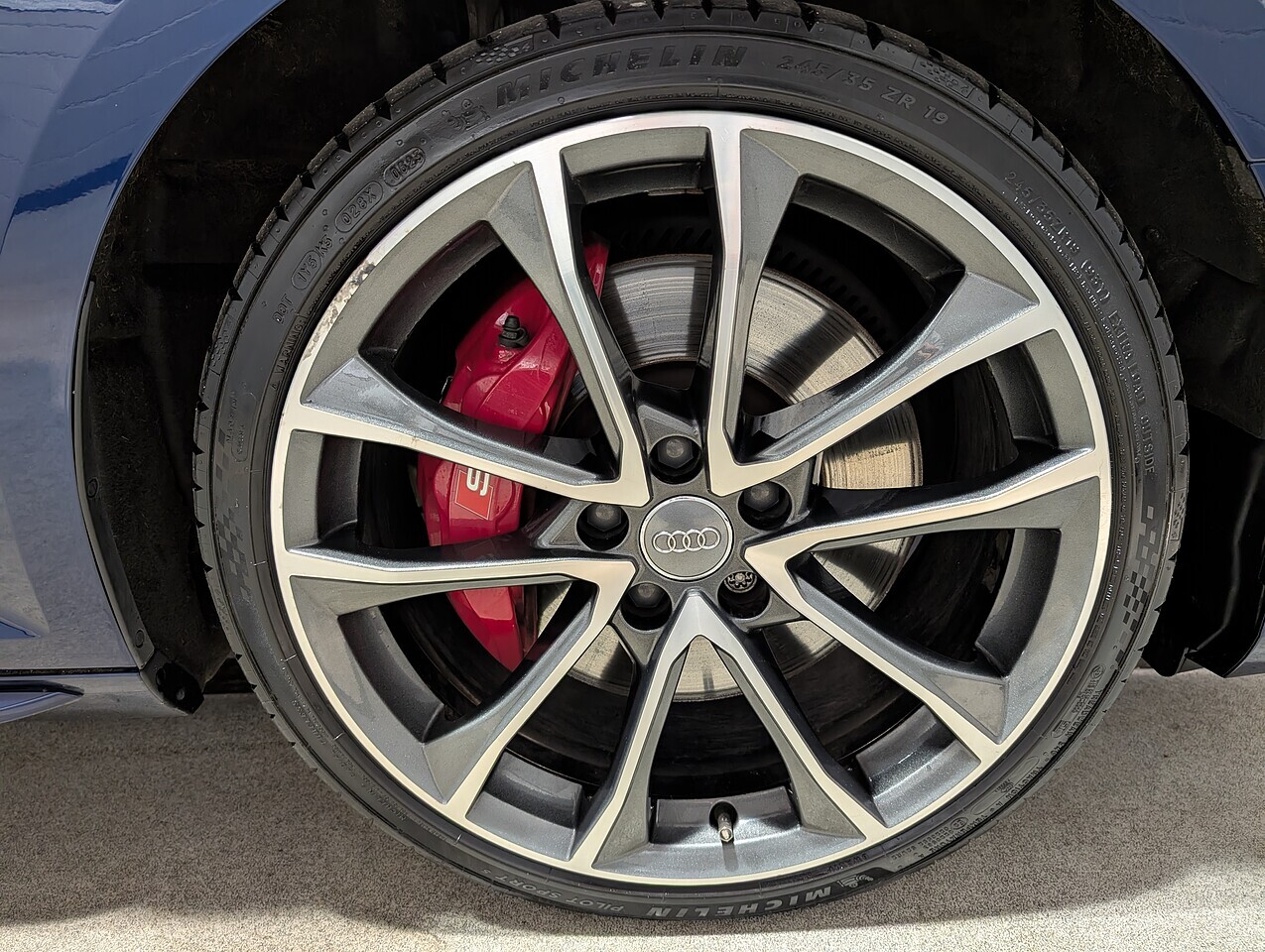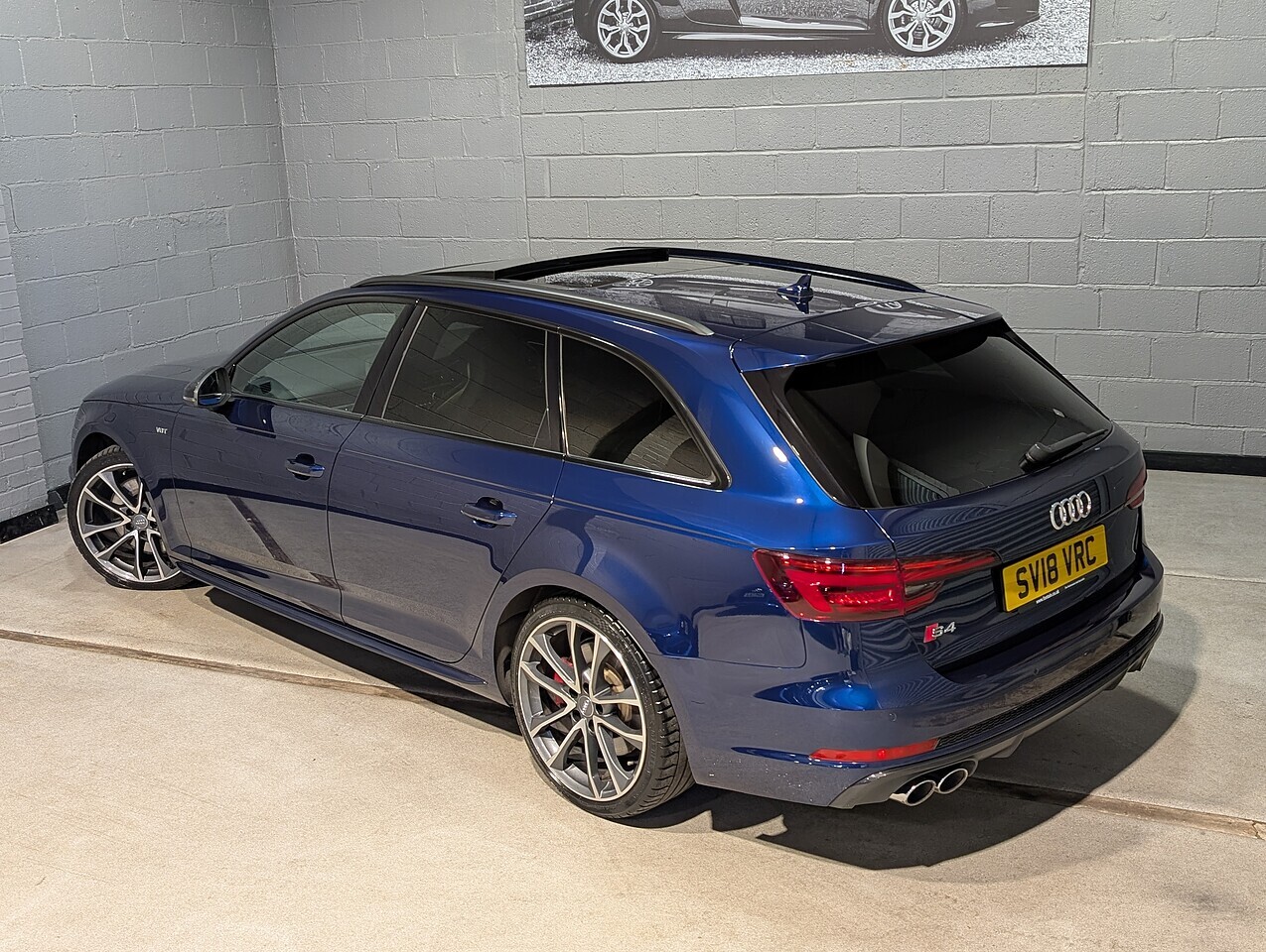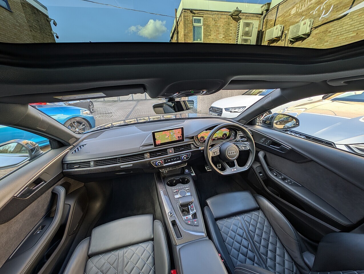 Panoramic glass sunroof, quattro with sporet differential, Sport suspension with damper control, Comfort & sound pack, Light & vision pack, Navarra blue metallic paint, Full black diamond stitched leather interior, Electric front seats with memory for driver, Electric folding & dimming door mirrors with memory, Bang & Olufsen speaker upgrade, Keyless entry & starting, Reversing camera, Virtual cockpit, Matrix LED headlamps, Extended LED ambient lighting pack, Gloss black styling pack, 19" 5-spoke V design alloy wheels, Privacy glass, Carbon atlas interior inlays, Red brake calipers, Storage pack.