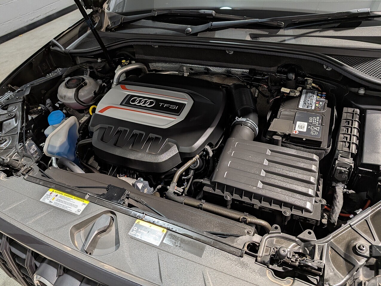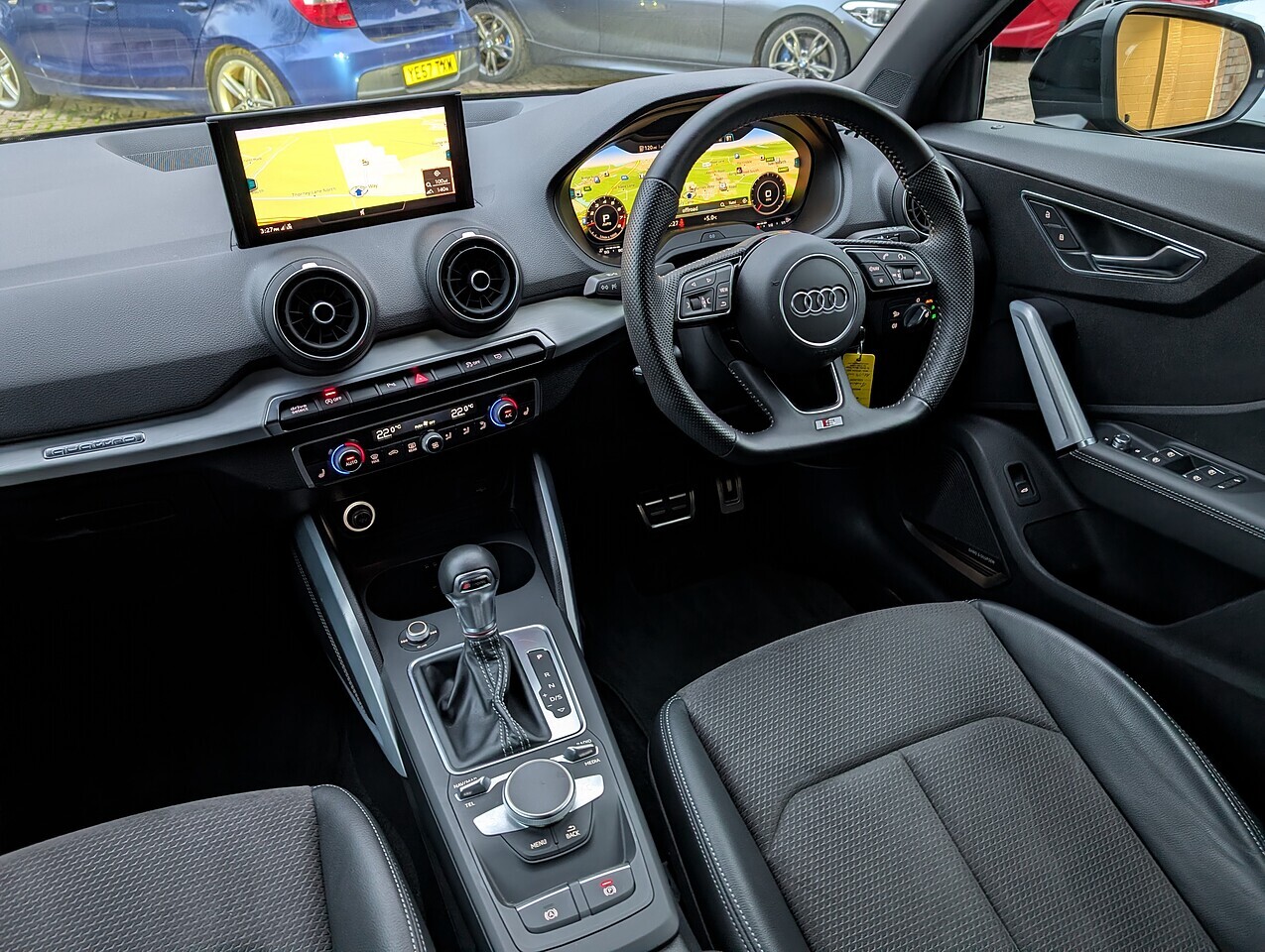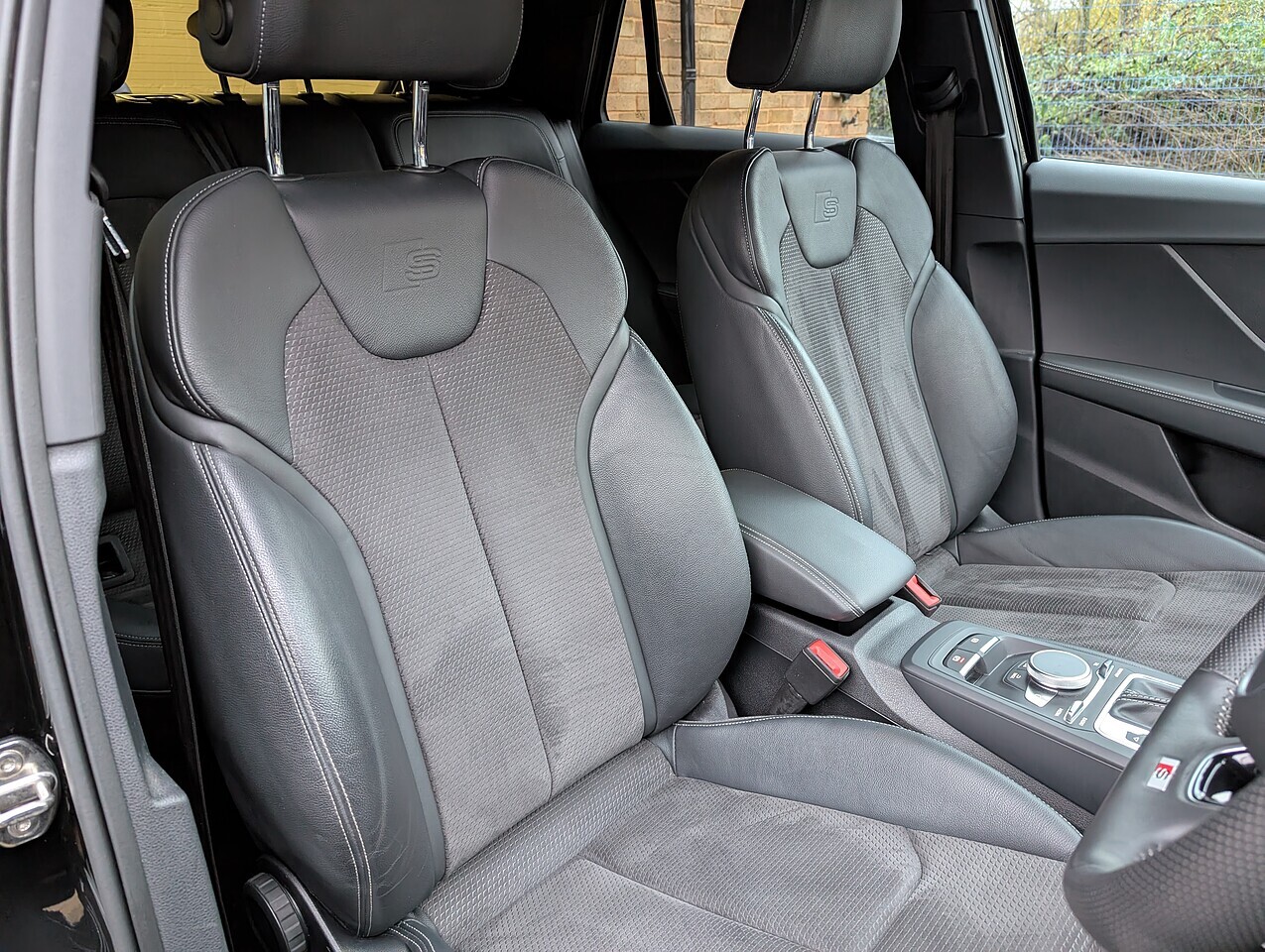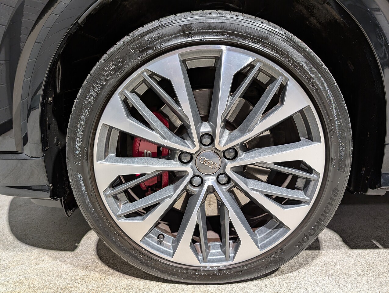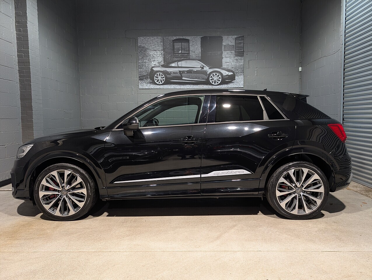Technology pack, SQ2 exterior pack, Virtual cockpit, Bang & Olufsen speaker upgrade, Reversing camera, Mythos black metallic paint, Black leather interior with Alcantara centres, Red brake calipers, Flat bottomed steering wheel, 19" 5-double-spoke V-style alloy wheels, Heated front seats, Gloss black styling pack, Electric folding & dimming door mirrors, MMI satellite navigation plus, Parking system plus, Cruise control, Hold assist, Privacy glass.