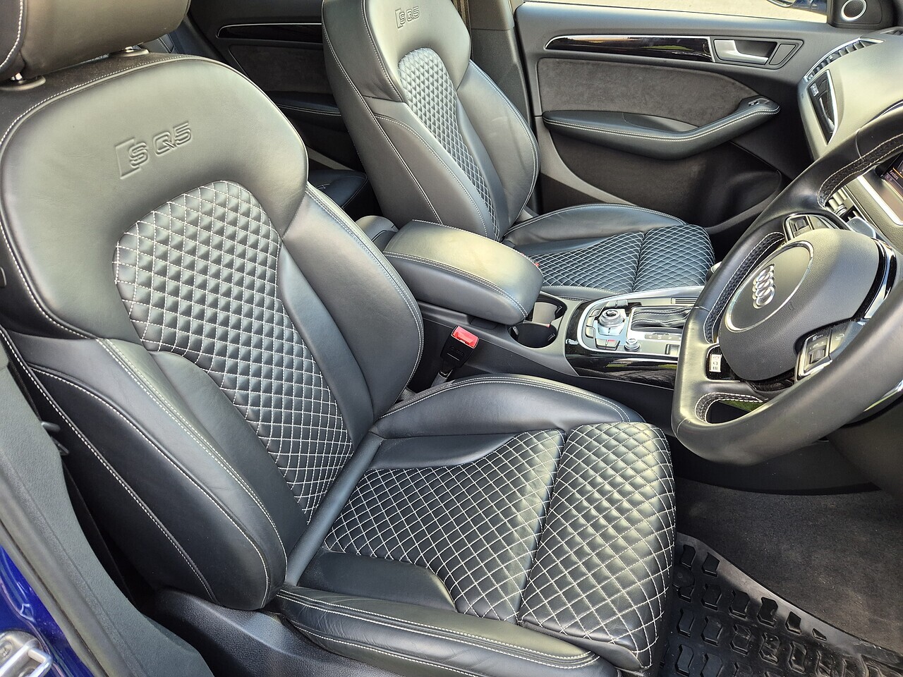 Panoramic glass sunroof, Assistance pack, Technology pack, Sound pack, 21" 5-twin-spoke star design alloy wheels, Bang & Olufsen speaker upgrade, Sepang blue pearlescent paint, Full black diamond quilted leather interior, Drive select, Flat bottomed steering wheel, Electric front seats with memory for driver, Gloss black styling pack, 21" 5-twin-spoke star design alloy wheels, Heated front seats, Piano lacquer black interior inlays, Electric folding & dimming door mirrors with memory, MMI satellite navigation plus, Parking system advanced with rear camera, Side assist, Audi connect online services, quattro with sports differential, Heated and cooled cup holder, Red brake calipers, Adaptive cruise control, Audi music interface, Hold assist, Main beam assist, Privacy glass.